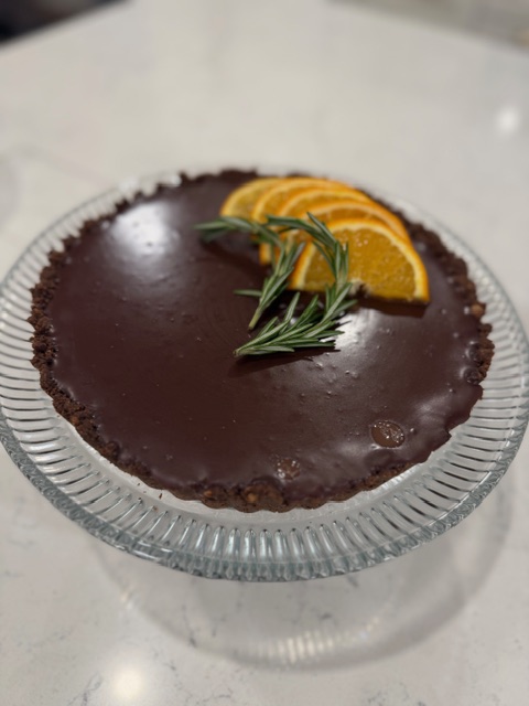 In a 3-4 Qt pot, melt the butter, cream, and mandarin zest. Bring to a simmer and then reduce to low. Stir frequently so it doesn’t stick on. Add the chocolate chips and mandarin juice and whisk until smooth. Pour into the cooled shell, bang gently on the counter to smooth the top. Chill for 2-4 hours in the fridge.