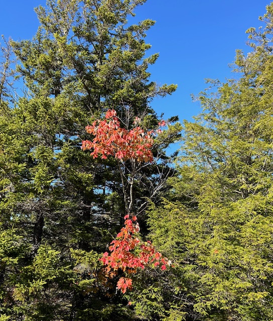 Yesterday I took a ME day! I hiked to the top of Great Pond Mountain in Orland, Maine. This is my favorite time of year in Maine; the tourists have gone home, the days are crisp and bright, and the leaves are changing, absolutely beautiful. The picture below tells the story, bright reds that stood out against their green background. Made me think of the statement above. So many times, we just go with the flow, do what we’ve always done, take the familiar or comfortable path when we have the ability to DRIVE CHANGE AND DARE TO BE DIFFERENT! The easier path might not be the most rewarding!